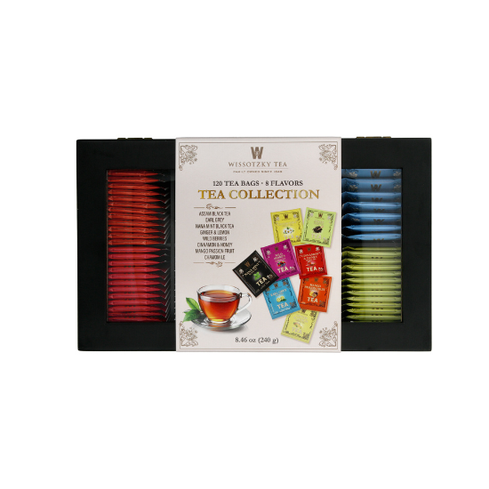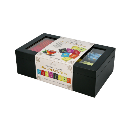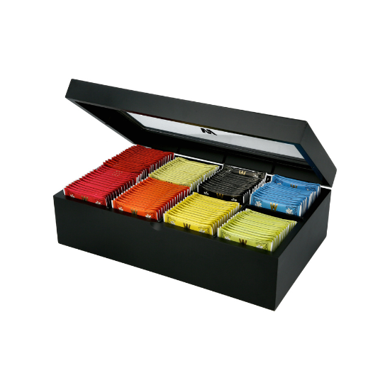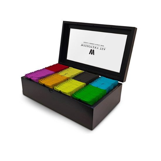 תיבת עץ יפהפיה ומרשימה עם חלון שקוף הניתנת למילוי חוזר, המארז מכיל 120 שקיקים.